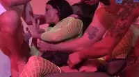 In this wild orgy filled with lust and excitement, four hard cocks and a horny whore come together for a night theyll never forget.The scene is filled with eroticism as the four guys stand in a circle, their hard cocks at full attention, ready to explore the limits of their desires with their willing partner.As the music plays loudly, filling the room with an air of excitement, the woman eagerly steps forward, her eyes filled with hunger and lust.She knows exactly what she wants and is not afraid to ask for it.The four men cant help but be drawn to her allure, each imagining themselves fucking her in a variety of positions, exploring every inch of her willing body.The orgy begins as the woman starts sucking one of the cocks, her mouth wet and warm around his length as she eagerly takes him deep inside her throat.Her moans echo through the room, causing the other three guys to grow even harder, their own desire for her reaching a fever pitch.Not wanting to be left out, the first guy reaches up and plays with the womans clit, as his friend watches from behind, enjoying the show while gripping her firm ass.With every thrust and lick, it becomes clear that there is no holding back in this wild orgy.As the night progresses, the four guys take turns fucking the woman, her body bending and twisting to accommodate their insatiable appetites.Her moans grow louder with each penetration, urging the men on as they explore her from every angle.Its not long before one of them suggests a bukkake, a group activity that would allow all four men to cum on her face in unison, an act both dirty and exhilarating in equal measure.The woman agrees, excited by the idea and eager to receive the hot load that awaits her.In this moment, the room fills with loud moans, grunts, and groans as each participant loses themselves in the thrill of it all.Limbs intertwine, bodies press against each other, and breath becomes heavy.As climax approaches, each person is fully immersed in their own fantasy world, consumed by desire and carnal pleasures.The wild orgy reaches its peak as the womans body trembles with intense pleasure, her eyes rolling back in her head as the four guys explode onto her face.The room erupts with laughter and satisfaction, knowing that they have shared a night they will never forget.And as they catch their breath, each person exits with a smile on their face and anticipation for future encounters.In this sensual, erotic tale, four hard cocks and a horny whore come together for an unforgettable evening of lust, desire, and ultimate satisfaction.From group activities to oneonone encounters, each participant pushes their limits, exploring new heights and discovering just how wild the human body can be.