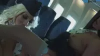 In the dimly lit cockpit of the aircraft, you watched as two hot lesbian flight attendants in their tight, form-fitting uniforms playfully teased each other.The air was thick with anticipation, as the blonde stewardess began to unbutton her partner's shirt, revealing the most succulent tits you had ever seen, adorned with a thin layer of lace beneath her bra.As they made out passionately, your dick twitched and strained against your zipper, desperate for release.In the cabin below, you were at first blissfully unaware of their playful antics however, it was only a matter of time before your raging boner could no longer be ignored.As you adjusted your already-too-tight jeans to alleviate the discomfort, you couldn't help but imagine how good it would feel to fuck each of these beautiful girls senseless and to see their sweet cunts dripping with your sticky, hot cum.As if reading your mind, the blonde stewardess turned away from her partner, flashing you an alluring wink as she pushed up her skirt to reveal a completely shaved pussy, glistening and wet beneath the fabric of her panties.You watched in awe as she pulled them aside, revealing the most sensitive part of her anatomy her engorged clit that was just waiting for your mouth and tongue to attend to it.With her partner's finger pressed against her lips to keep them sealed shut, the blonde stewardess pushed herself up against the cold metal wall of the aircraft, panting and gasping with each passionate thrust of her lover's fingers against her moist, horny flesh.Your cock throbbed even more painfully within your pants at the sight and the anticipation of finally joining in on their fun.When at last she couldn't hold out any longer, she stepped away from the wall, her breath coming in short pants as she glanced at you with desire-filled eyes, aroused and flushed from their intense encounter.You found yourself mesmerized by the sight of her taut, shaved cunt before her, inviting you to take a seat and taste the nectar that had been building within her.You took your place at her feet, eager to oblige, and began to explore every inch of her delicious pussy with your mouth, flicking her clit and pushing your tongue deep inside her steaming hole until she cried out in blissful pleasure.The smell of her arousal mixed with the faint scent of airplane fuel only added to the erotic atmosphere, as she held onto the back of your head to keep herself grounded amidst the dizzying heights her lust had reached.With every stroke of your tongue, you felt yourself growing harder and more impatient desperate to claim both girls for yourself, and to make them beg for more of your sticky, sweet cum.The thought of it spilling all over their tight, uniformed clothes made your cock pulse in excitement, as you imagined how they would respond once overwhelmed with the intensity of your release.As if in response to your fantasies, the blonde flight attendant stepped away from her lover, pulling herself away long enough to unbutton her own shirt and expose a luscious set of tits just begging for your touch.You imagined how good it would feel to grip one in each hand as they moaned with pleasure beneath your skillful fingers, teasing them on the edge of their desire until they begged you to release yourself all over their hot pussies, drenching both uniforms in your steamy, sweet reward.This scene unfolded before you one that played out in your mind like a movie you wished you could star in and yet, at the same time, another that seemed almost too real, as though it was being played out right in front of you.For now, though, you had to settle for the knowledge that these beautiful women would haunt your dreams, their passionate play and erotic encounters imprinted forever in your heart, until such time as fate finally allowed you to live out this lust-filled fantasy.