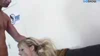 In the dark room filled with soft red light, three individuals, two men and one woman, prepare to indulge in a sensual, exhilarating experience.The woman's curves are accentuated by her tight lingerie, while the men, each with their impressive endowment, sport only their briefs, their bulging cocks straining against the fabric.They share glances filled with desire and anticipation, knowing that the night will bring them to unimaginable heights of pleasure.The scene kicks off with a passionate kiss between the two men as they eagerly explore each other's bodies.Their hands roam over hard muscles and taut skin, leaving trails of sweat and desire in their wake.As their hunger grows, the woman watches with lust-filled eyes, ready to join the fray.Their passion soon becomes more than either man can bear as they turn their attention to the woman's exquisite form.She gasps in delight as one man attends to her eager mouth and pouting lips, while the other caresses her toned legs and teases her sensitive nipples with his tongue.The sensation is overwhelming, as she arches her back and moans deeply into her lover's mouth, beckoning for more.The woman takes center stage, her legs spread wide to accommodate the two eager men.The first slides his rock-hard cock into her wet pussy, while the other kneels before her, ready to feast on her swollen clit with unbridled passion.Their moans intermingle in a cacophony of erotic delight as the threesome plunges deeper into their debaucherous pleasures.Her body contorts and quivers in an ecstatic dance, her breaths growing shallow as the men push her further into euphoria.The first man, unable to withstand it any longer, pulls out just before he spills his seed onto her heaving breasts, leaving her slick and satiated.Her cunt grips tightly around the first man's cock, milking every last drop of pleasure from his spent member as his body convulses in bliss.Simultaneously, the woman's mouth envelops the other man's throbbing member.Her hand strokes in tandem with her oral assault on his thick, veiny rod, her lips swollen and wet from the exertion.She can feel him growing even harder, tensing as he surrenders himself to the inevitable release.Within moments, the man's balls tighten, his thrusts becoming more urgent.He watches in awe as the woman's eyes lock with his own, their gazes a study of raw, unadulterated lust.With one final push, he lets out an animalistic cry, emptying himself into her eager throat and onto her cheeks as she continues to milk every last drop from his throbbing cock.Exhausted and satisfied, they all collapse in a tangle of limbs and spent passion.Sweat glistens on their bodies, and their heartbeats begin to slow, returning to the norm after a wild ride through the depths of ecstasy.They bask in the afterglow of their threesome encounter, knowing full well that the night's memories will be etched into their minds as one of the most intense and pleasurable experiences they have ever shared.